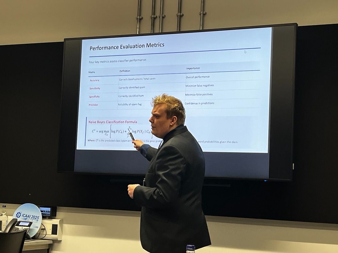 Účastník AI Talentového programu Bc. Tobias Hočevar se na konci listopadu zúčastnil prestižní mezinárodní konference ICAAI 2025 – International Conference on Advances in Artificial Intelligence, která se letos konala v Manchesteru.